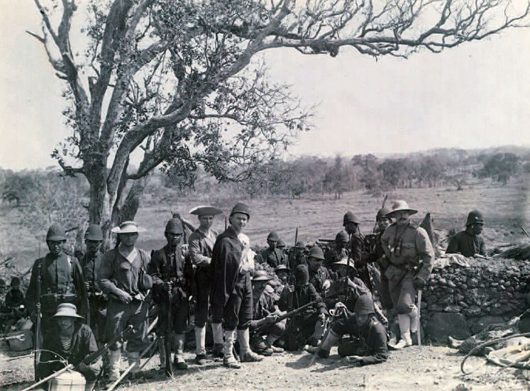 Afb. 7 Veroverde benteng bij Paré Paré, augustus 1905. Volgens het opschrift van Goldman: ‘Bij de benteng waar van Helsdingen gewond werd. Adelborst Carbin. Benteng bij de Karadjarivier, Paré-Paré’. (Legermuseum Delft)