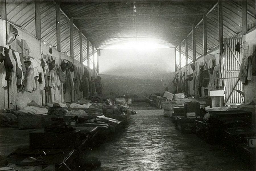 Interieur van een barak op het eiland Onrust in de Baai van Batavia, waar Europeanen werden geïnterneerd wegens veronderstelde Duitse sympathieën [KITLV 19072]