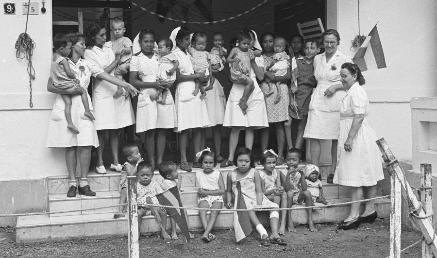 Prinses Margriethospitaal, Batavia, 1947: verpleegsters en kkinderen.