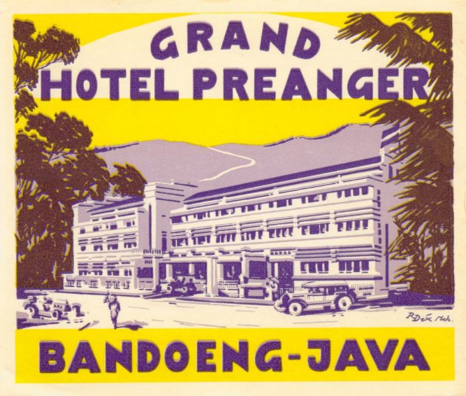 Hotelbagagelabel van het befaamde Grand Hotel Preanger in Bandoeng, Java, in de jaren dertig.