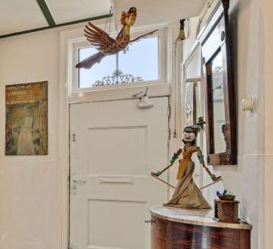 Maar dit keer zou het er dus van komen. Ik was zó dicht in de buurt dat ik geen excuus meer had. Ik belde haar op, en – gelukkig – ze reageerde positief. Met een bosje bloemen ging ik op weg naar haar woonplaats. Het was een allerhartelijkst weerzien. Enigszins verbaasd was ik te zien dat ze in de hal, bij de voordeur, een houten wajangpop had staan.  Het zal toch niet dat ook zíj uit Indië komt?