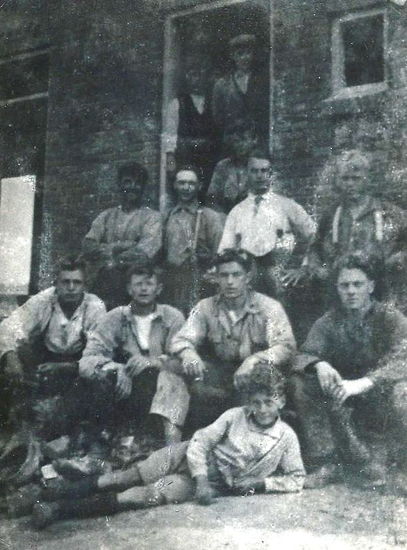 Het personeel van Van Heezen, ca. 1930. Leen Immerzeel in het midden, met lasbril op zijn voorhoofd.